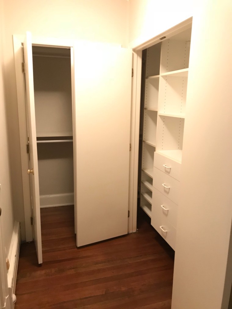 This weekend we emptied the space of its contents (lots and lots to donate) and kept only what we use. Then a call to our favorite contractor, and in less than one day all existing closet components and walls were removed. The result, a blank slate.