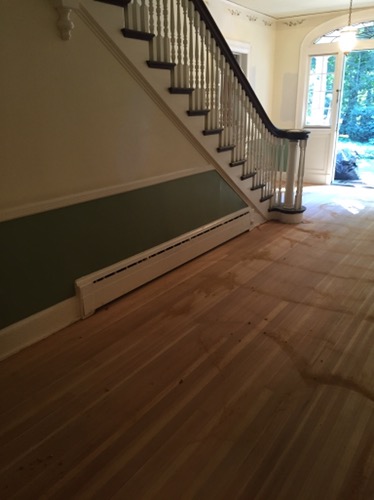 After seeking referrals from friends, we selected a highly recommended floor expert with experience in older homes.  Once sanded, decision time- leave their natural color or add a stain to the floors.
